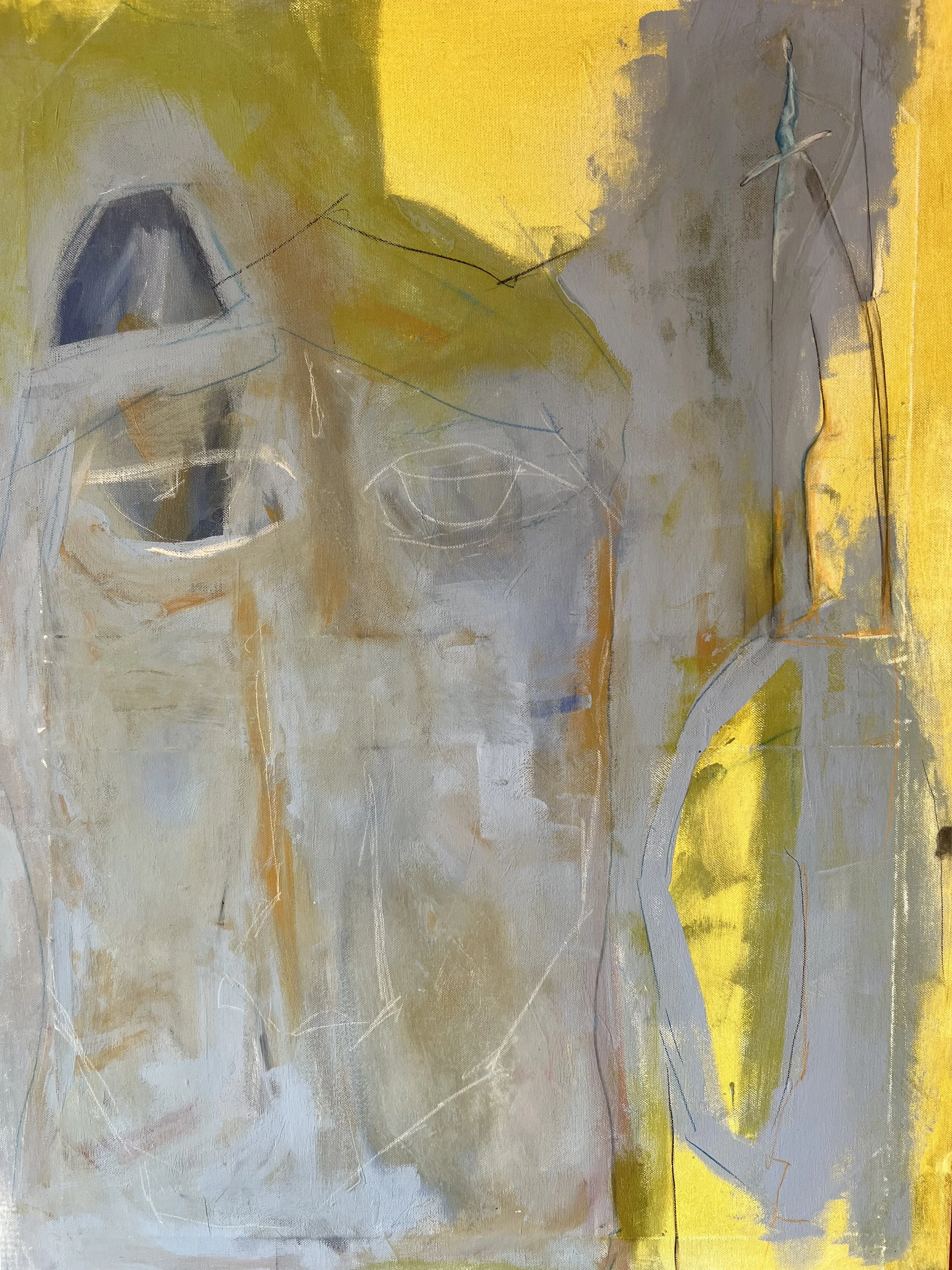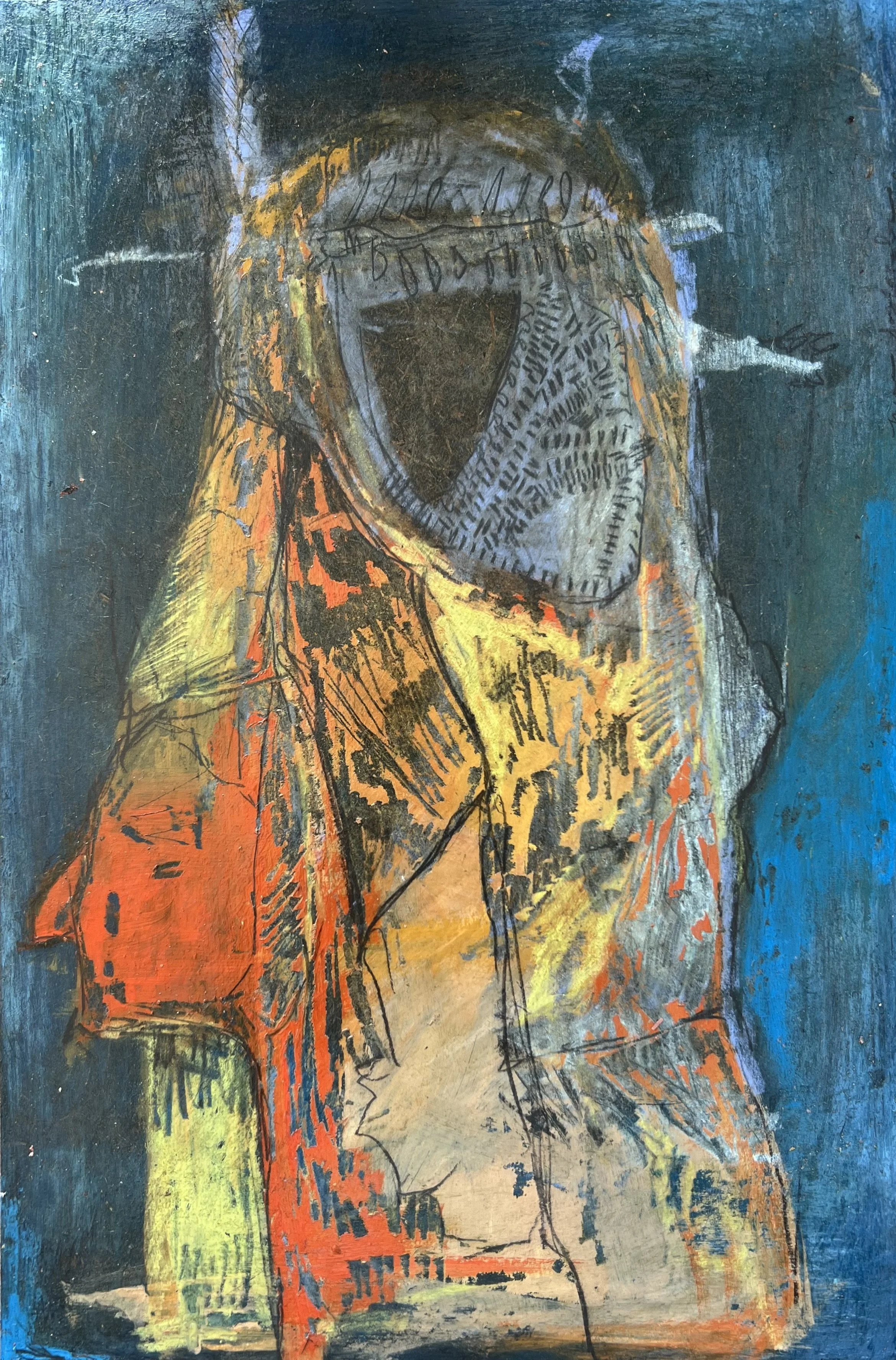 Aztec Call, Acrylics and graphite on panel, 2025.